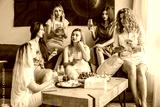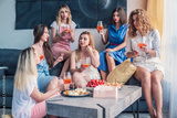 Girls Party. Beautiful Women Friends Having Fun At Bachelorette Party. They are Celebrating And Drinking Champagne At Hen Party. They are talking
