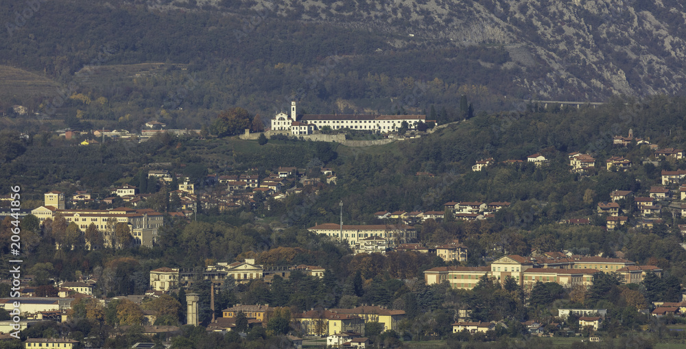 Town Gorizia with franciscan monastery in Kostanjevica on the border with Nova Gorica in Slovenia