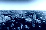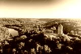 aerial view to the Turaida castle and river Gauja at sunset, Latvia