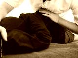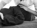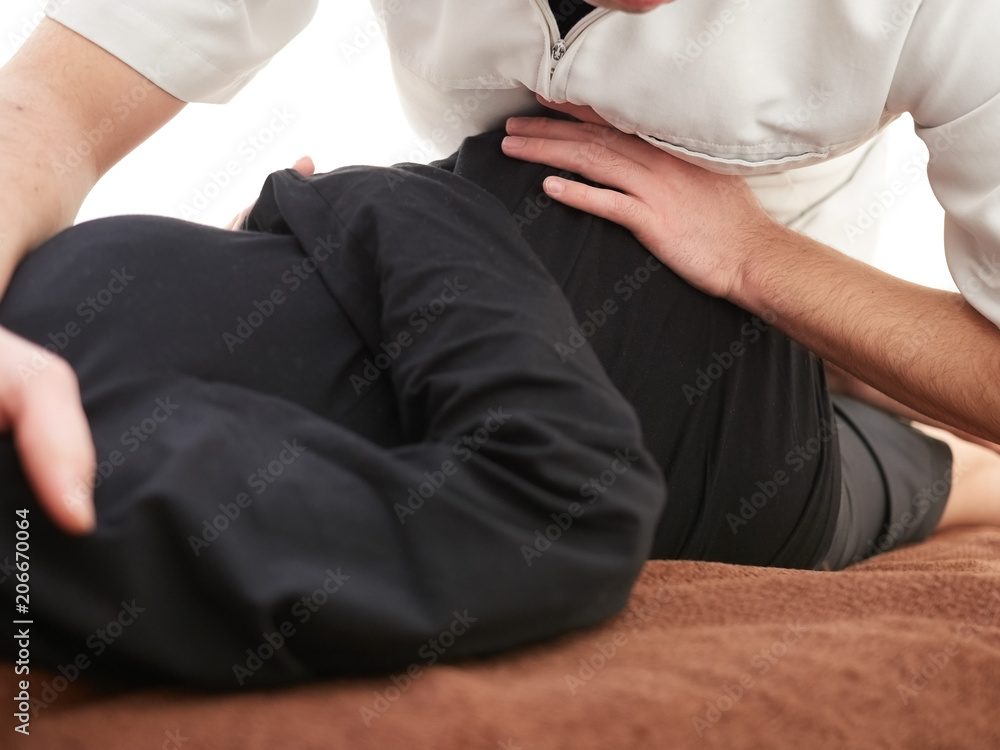 体の筋肉を伸ばすストレッチを受ける女性