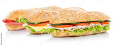 Baguette Brötchen belegt mit Schinken Salami Käse Sandwich frisch Vollkorn freigestellt Freisteller