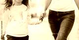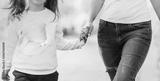 Mom holds her daughter by the hand walking