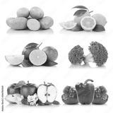 Früchte Obst und Gemüse Sammlung Apfel Kartoffeln Zitrone Farben frische Freisteller freigestellt isoliert