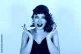 Beautiful redhead girl with curly ginger hair surprised and shocked