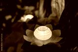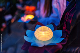 Hands holding the shining flowers. Evening celebration