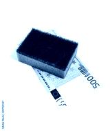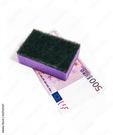 Dirty money wash laundry, corruption concept. Euro money cleaning with washing sponge.