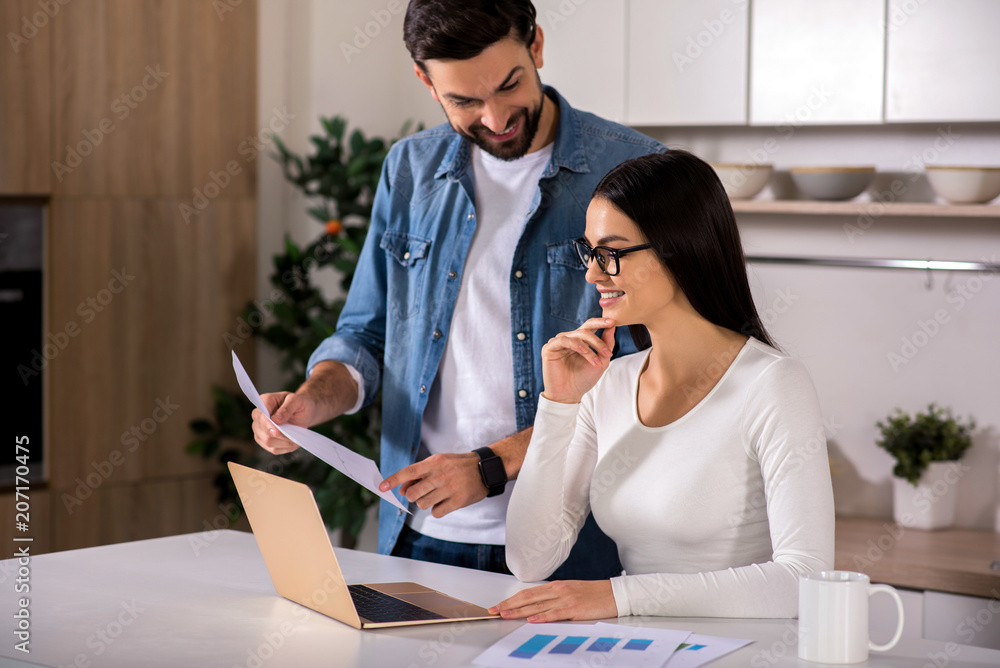Positive couple working in the kitchen