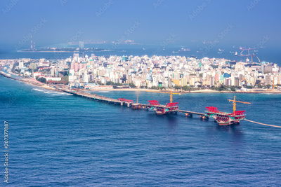 Male Malediven Insel Hauptstadt Meer Brücke Luftbild