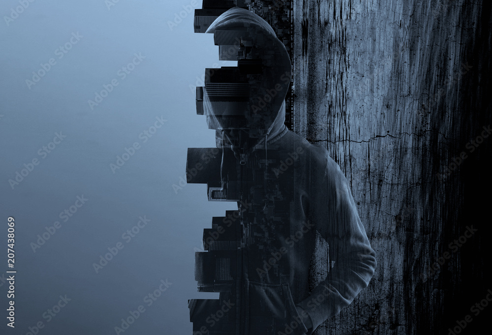 Suspicious man in hoody. Personal safety concept