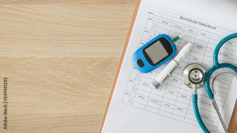 World diabetes day, National American diabetic awareness month, and healthcare concept with blood drop examination tool kit