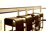 Row of blue weave bar stools with sea view in hotel or restaurant