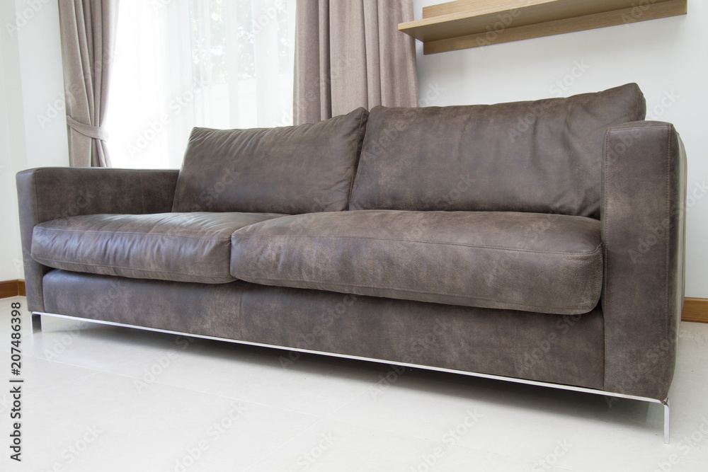 Leather sofa in modern living room