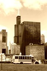 Willis Tower (formely Sears Tower), CNA Center and other Chicago Landmarks. Picture taken from Michigan lake front.