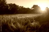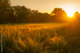 Wheat field over sunset sky