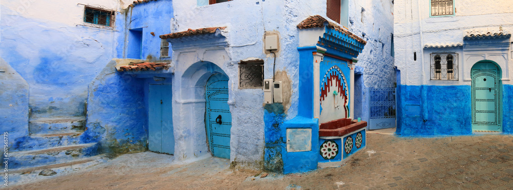 Pretty typical street in the medina of Chefchaouen, one of the most touristic towns of Morocco