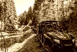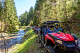 A tour group travels on ATVs and UTVs on the mountains