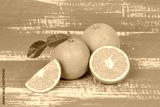orange fruit on color table background.
