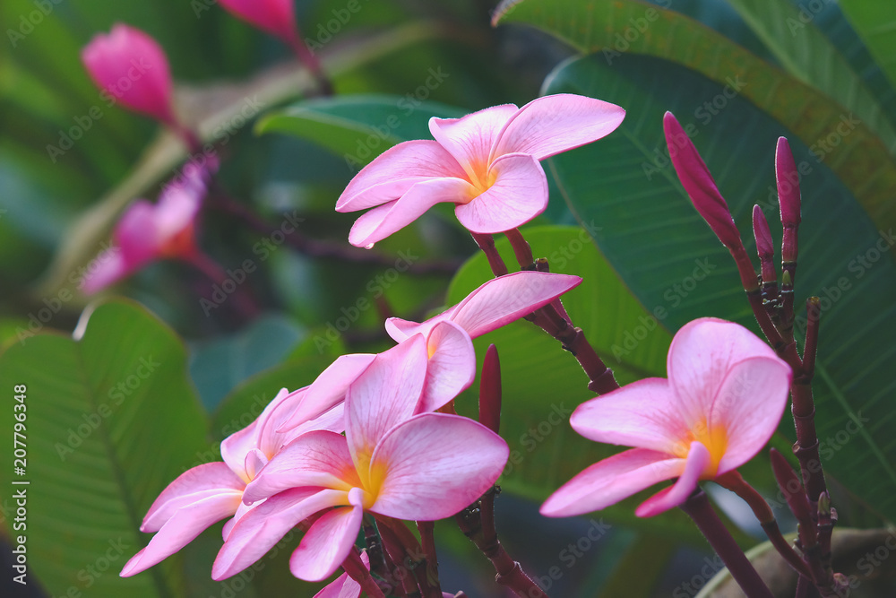 fresh Colorful Plumeria on tree in garden.