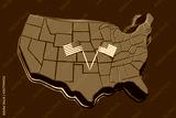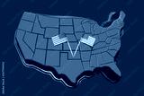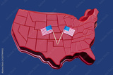 Three dimensional map of the continental US with American Flags displayed on it - Patriotic background or element