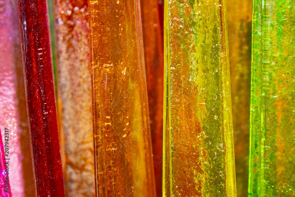 Shiny uneven vertically striped colorful background of pink red orange yellow and green