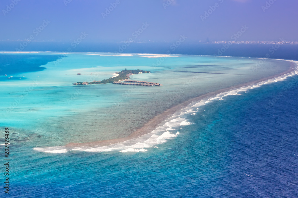 Malediven Insel Urlaub Paradies Meer Atoll Lagune Luftbild