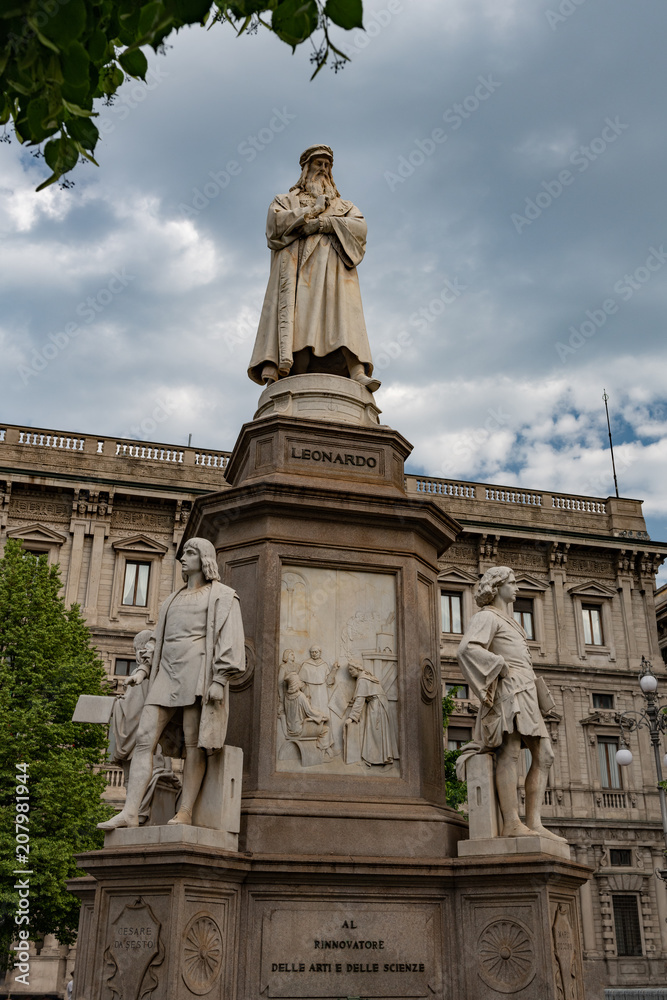 The statue of Leonardo da Vinci in the Piazza dell Scala in Milan