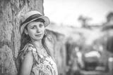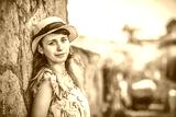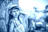 Beautiful girl from the old stone walls-the concept of lifestyle, toning