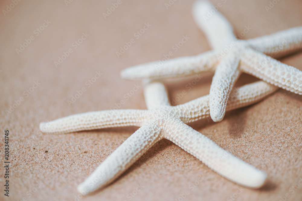 Soft focus couple beautiful starfish on Sandy beach background background for summer holiday and vacation concept.