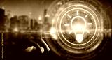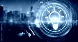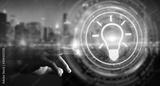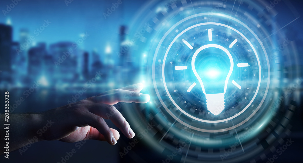 Businessman using lightbulb idea interface 3D rendering