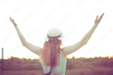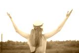 The girl raised her hands to the sky in nature