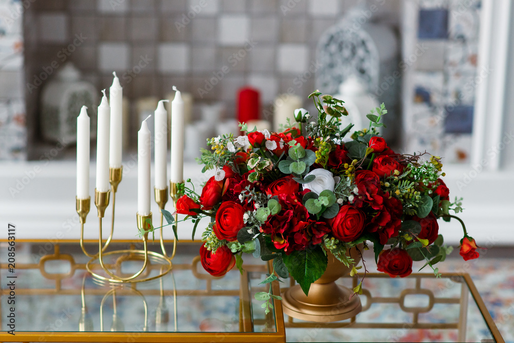 beautiful DECOR of RED ROSES and candles.