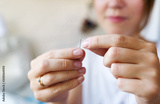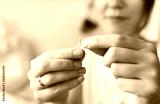 Seamstress threading a needle.