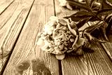 Peonie flowers old wooden background.