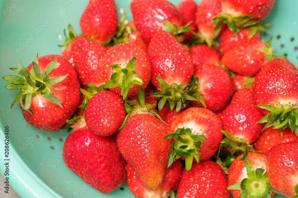 Rote Erdbeeren in grüner Schale