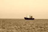 Vessel catches fish in the high seas. Fishing business.