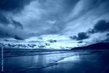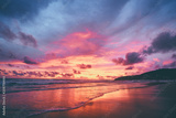 Beautiful sunset on ocean beach. Sky is reflecting at water.
