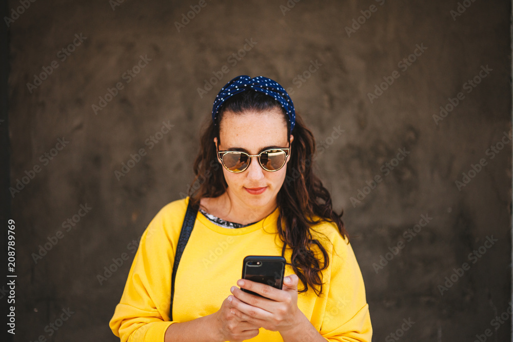 Woman touring the center of Madrid, tourism concept.