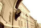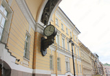 Old Vintage Clock on Triumphal Arch of General Staff Building at Palace Square in Saint Petersburg, Russia. Monumental Neoclassical Style Building Architecture Details of St. Petersburg City.