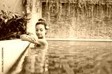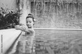 Swimming pool spa retreat relaxation. Relaxing woman lenjoying serenity in summer holiday travel vacation at resort hotel.