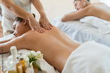 Young beautiful Asian woman sleep relaxing in the Oil spa massage in salon. Select focus hand of masseuse.