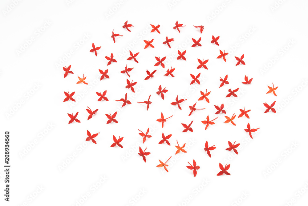 Red Ixora flower on white background.