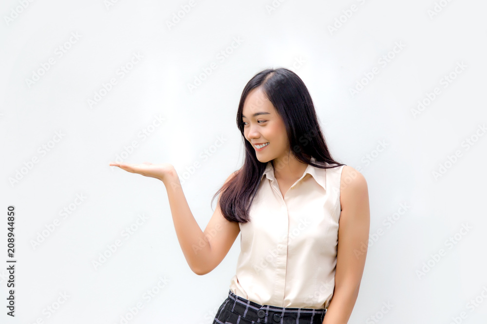 asian lady show hand for display product
