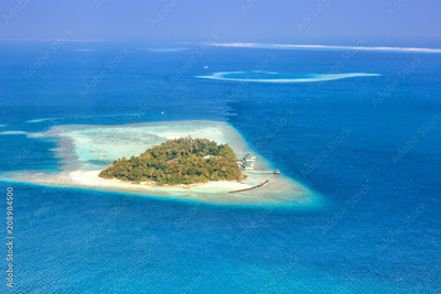 Insel Malediven Urlaub Paradies Meer Embudu Resort Luftbild