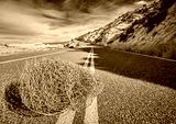 Tumbleweed on a road, color toned picture, Capitol Reef National Park, Utah, USA.
