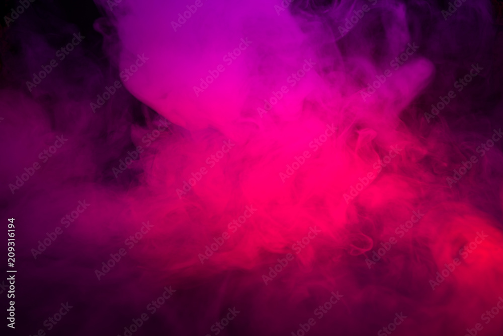 Colored purple and red smoke on a black background closeup