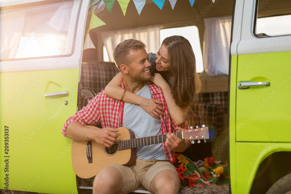 Young couple out on a road trip
