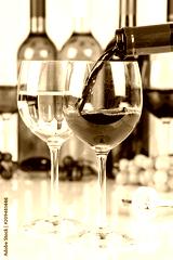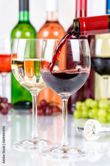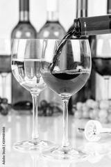 Wein einschenken eingießen Weinflasche Weinglas Rotwein Hochformat Flasche