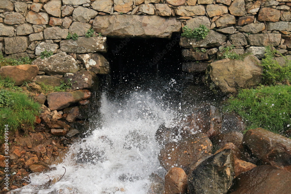 Water jet pouring out of a water mill located in Khizana, a beautiful natural environment close to Chefchaouen, a beautiful town in northern Morocco.