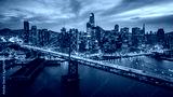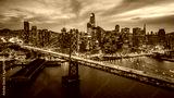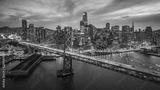 Aerial cityscape view of San Francisco and the Bay Bridge at Night
