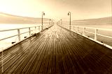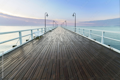 Wooden pier at sea shore, morning view, Gdynia Orlowo poland